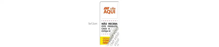| Vantagens: | • Produzida em Void de alta resistência • Com evidência de violação • Personalize com logotipo • Alta definição de impressão digital |