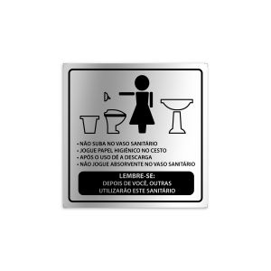 13. Placa de Higiene para Banheiro Feminino em Alumínio - Preto