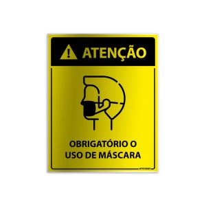 10. Placa Atenção - Obrigatório Uso de Máscara em Alumínio