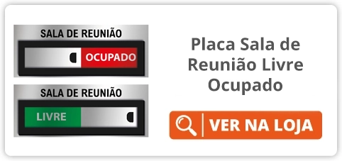 Seu diferencial está na personalização com o logotipo da empresa e nome da sala, proporcionando padronização visual e valorização da marca. A instalação é simples, utilizando fita adesiva de alta performance já inclusa na peça.