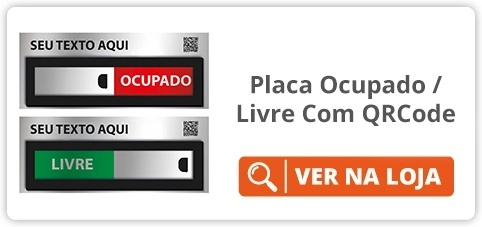 A personalização com o logotipo da sua empresa, aliada ao sistema deslizante Ocupado / Livre, proporciona uma comunicação visual clara, profissional e alinhada à identidade do seu espaço.